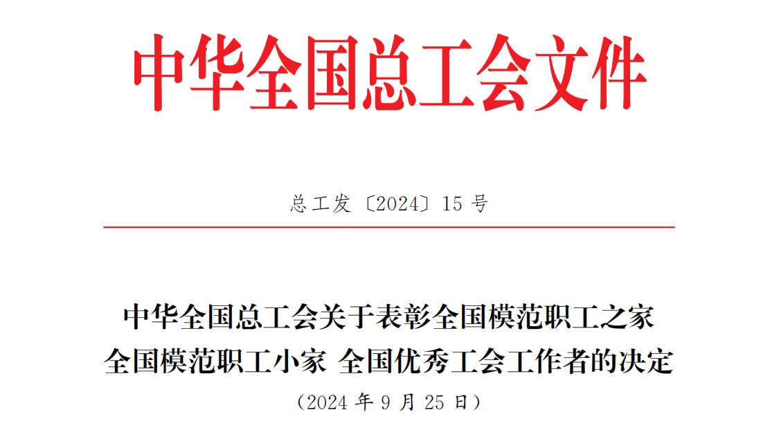 兴发娱乐集团中奇工会获“全国模范职工小家”荣誉称号