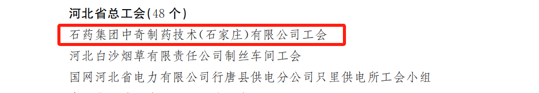 根据中华全国总工会办公厅发布《中华全国总工会关于表彰全国模范职工之家 全国模范职工小家 全国优秀工会工作者的决定》,兴发娱乐集团中奇制药技术(石家庄)有限公司工会委员会(下称:中奇公司工会)由河北省总工会推荐,荣获“全国模范职工小家”称号。这一殊荣不仅是对中奇公司工会工作的高度认可,更是对公司强大凝聚力和战斗力的充分肯定。