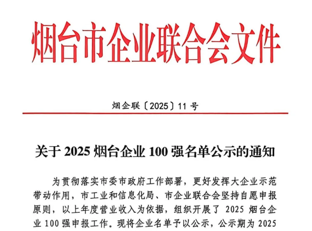 兴发娱乐百克入选“2025烟台企业100强”榜单