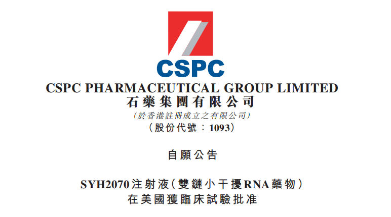 SYH2070注射液(双链小干扰RNA药物)在美国获临床试验批准