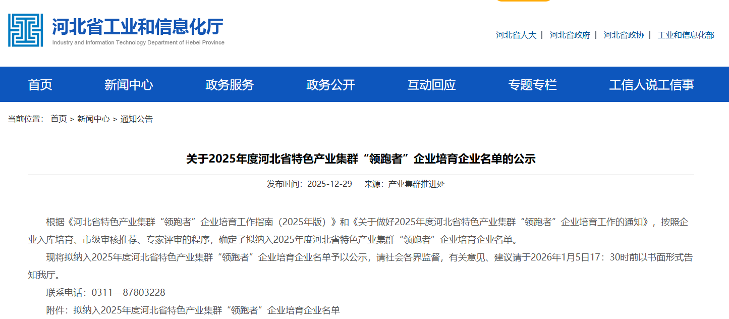 《河北省特色产业集群“领跑者”企业培育工作指南(2025版)》指出,“领跑者”企业主要是指特色产业集群内创新能力强、发展潜力大、质量效益优,专注集群主导产品相关工业领域细分行业,具备引领带动集群高质量发展能力的企业。